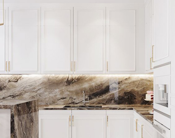 - در سبک کابینت نئوکلاسیک در صورتی که از دستگیره روی کار استفاده شود، دستگیره ها شکل ساده تر، مدرن تر و کوچک تری دارند. اما استفاده از دستگیره های مخفی در این سبک جذابیت بیشتری دارد.
