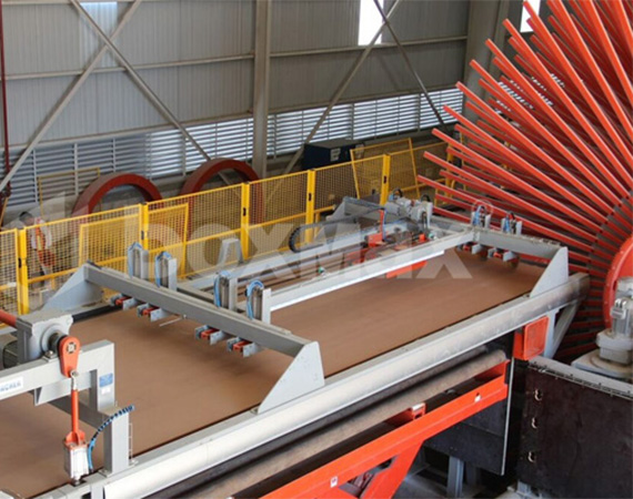 - پس از عملیات پرس، ورق ها را در اندازه های معینی کات می کنند و به قسمت خنک سازی انتقال می دهند. سپس از دمای بالای آن که تحت پرس گرم بودند می کاهند و آن ها را خنک می کنند.