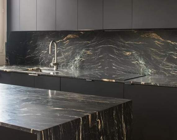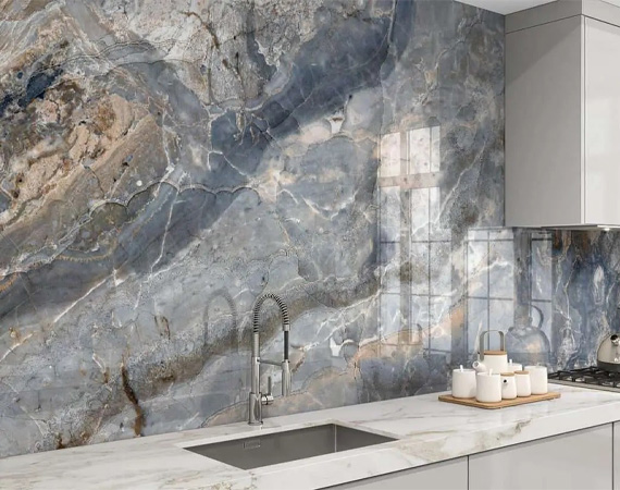 - بین کابینتی سنگ طبیعی : سنگ های طبیعی زیبایی چشم نوازی دارند که طبیعی بودن نقوش آن ها جلوه خاصی را به آشپزخانه می بخشد. اما قیمت آن ها بسیار بیشتر از سنگ های مصنوعی می باشد. و در صورت آسیب دیدن ترمیم آن ها غیرممکن یا بسیار سخت می باشد. از طرفی بسیار سنگین می باشند که این مسئله یک عیب محسوب می شود. سنگ های طبیعی به مرور زمان در مواجه با نور آفتاب ممکن است تغییر رنگ بدهند.