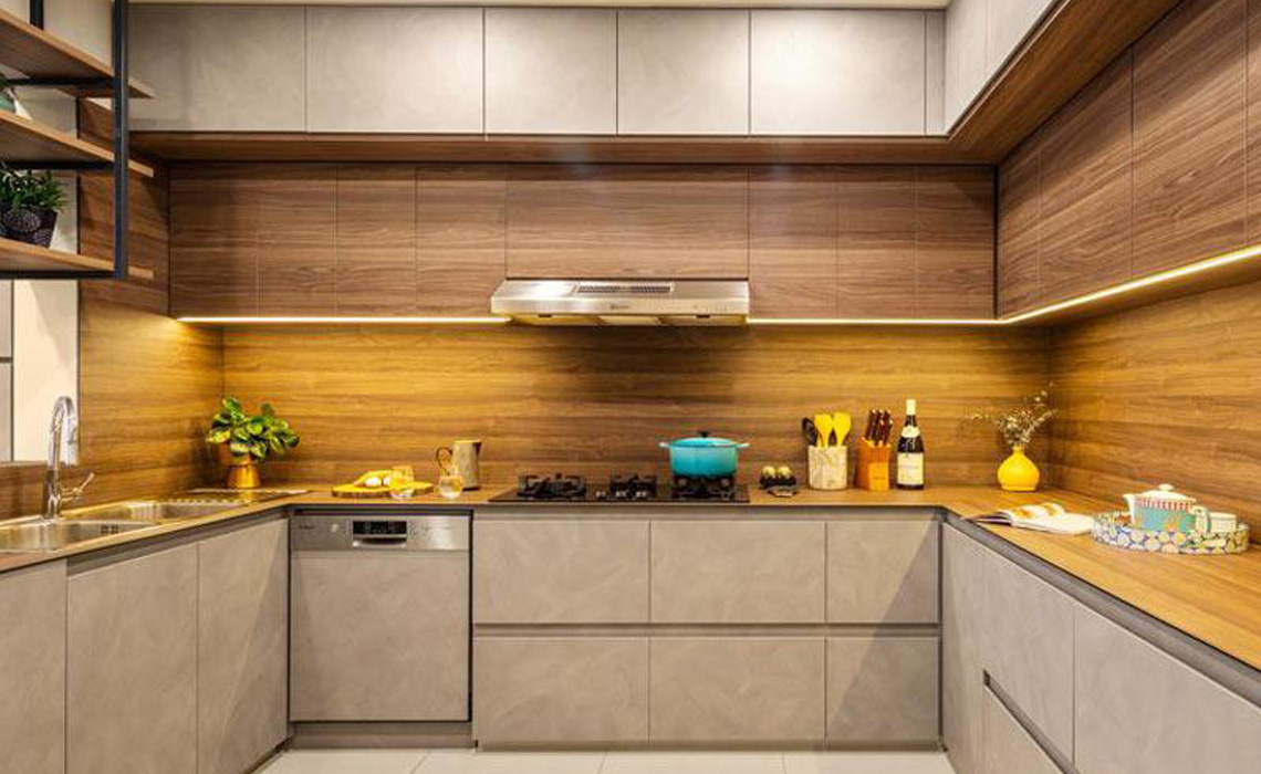 - بین کابینتی چوب : برخی از کسانی که کابینت آشپزخانه خود را از جنس چوب کار می کنند تمایل دارند متریال بین کابینت هم چوب استفاده کنند. اما این نوع بین کابینتی قابل احتراق می باشد و در مقابل حرارت و آب مقاومت زیادی ندارد. استفاده از آن ها پیشنهاد نمی شود.